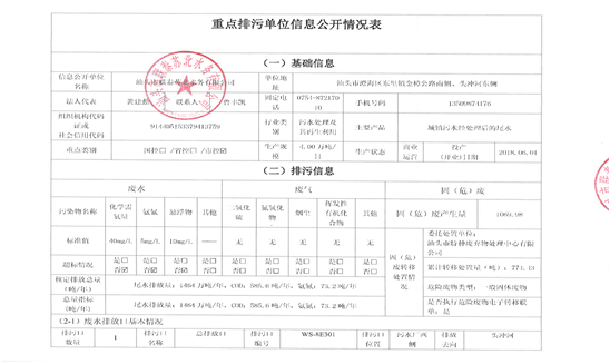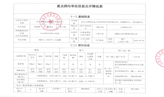 重點排污單位信息公開情況表