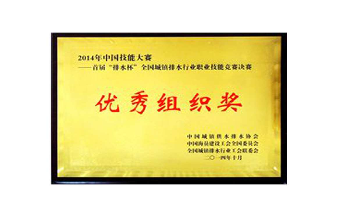 2014年首屆“排水杯”全國(guó)城鎮(zhèn)排水行業(yè)職業(yè)技能競(jìng)賽決賽優(yōu)秀組織獎(jiǎng)